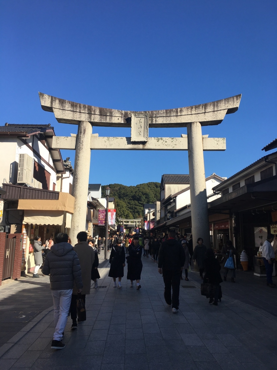 電車を乗り継いで行きました。平日なのに混んでいて、外国の方も多く、観光スポットという感じです。参道では名物の梅ヶ枝餅を一番並んでいる所で買いました。出来立てでとても美味しかったです。色々なお店があり、参道だけでも楽しいです。中は意外と狭いが、混んでいるのであまり回れませんでした。