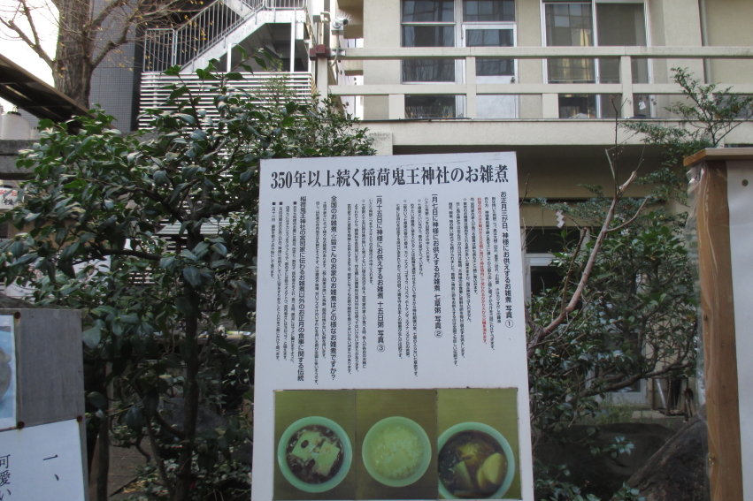 松の内にお参りしたら、境内には各家庭のお雑煮の写真に溢れていました。1月15日まで掲示されているとのことです。各家庭ごと、出身地にもよると思いますが、千差万別のお雑煮写真です。皆さんインスタ映えする撮影がお上手です。この風習は古くからのことではなく最近(平成19年から)始まったものだそうです。始まりは「350年続く、神前に供える雑煮は?」との質問に答えて、境内に平成18年の暮れに神社のお雑煮の模型を展示したことが始まりで、翌年から各家庭のものの写真も展示することになったそうです。境内には神前に供える雑煮の模型の「正月三が日のお雑煮」「7日のお雑煮=七草粥」「15日のお雑煮=十五日粥(おしるこ)」がまとまって展示されていました。