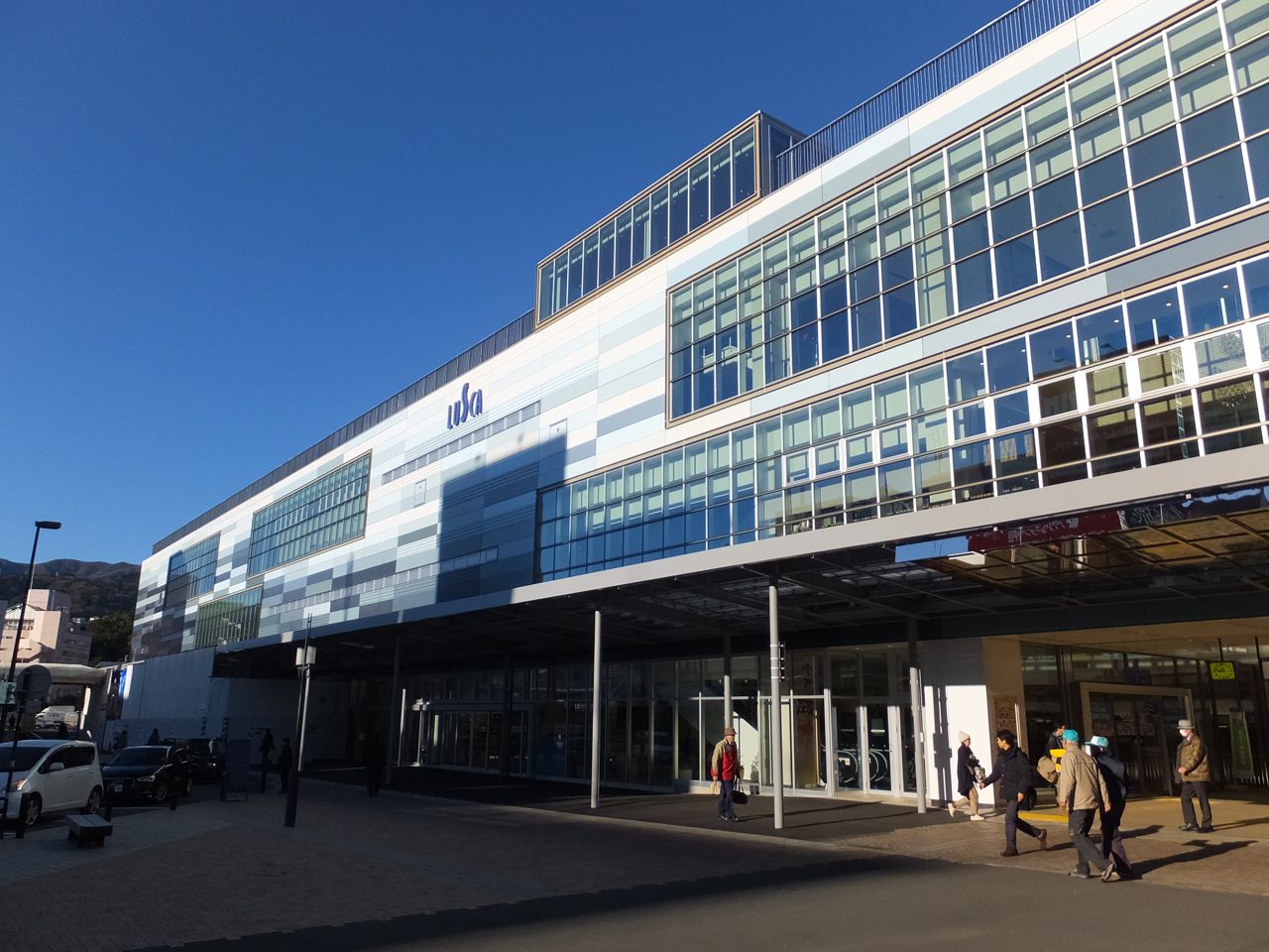 一大温泉地の熱海駅はこの改装前はちょっといなかの温泉町という感じでしたが、きれいにあかぬけて現代的なスマートな駅ビルに変わっていました。明るい外装は南向きなのもあって爽やかです。