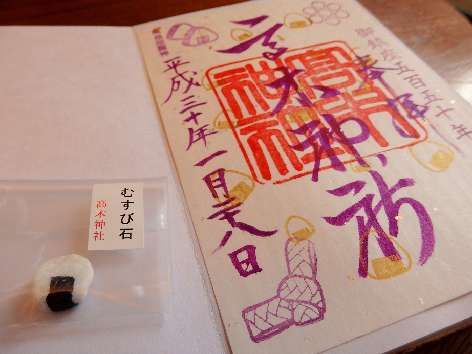 おむすびの絵が可愛い御朱印帳や、おむすびの印が入った御朱印が人気で、御朱印をいただくと「むすび石」というおむすびの形をした小さな石がいただけます。むすび石は素敵なご縁があるようにと祈念して授与しておられるそう。