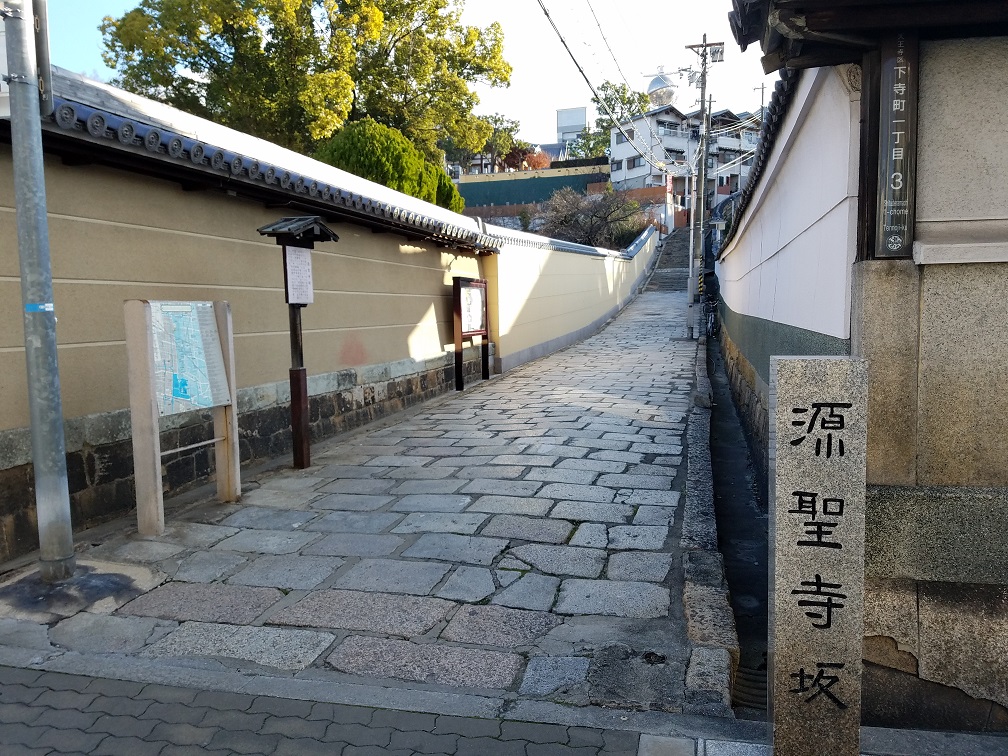 天王寺七坂の一つで坂の上り口に源聖寺があるのでこの名前がついています。