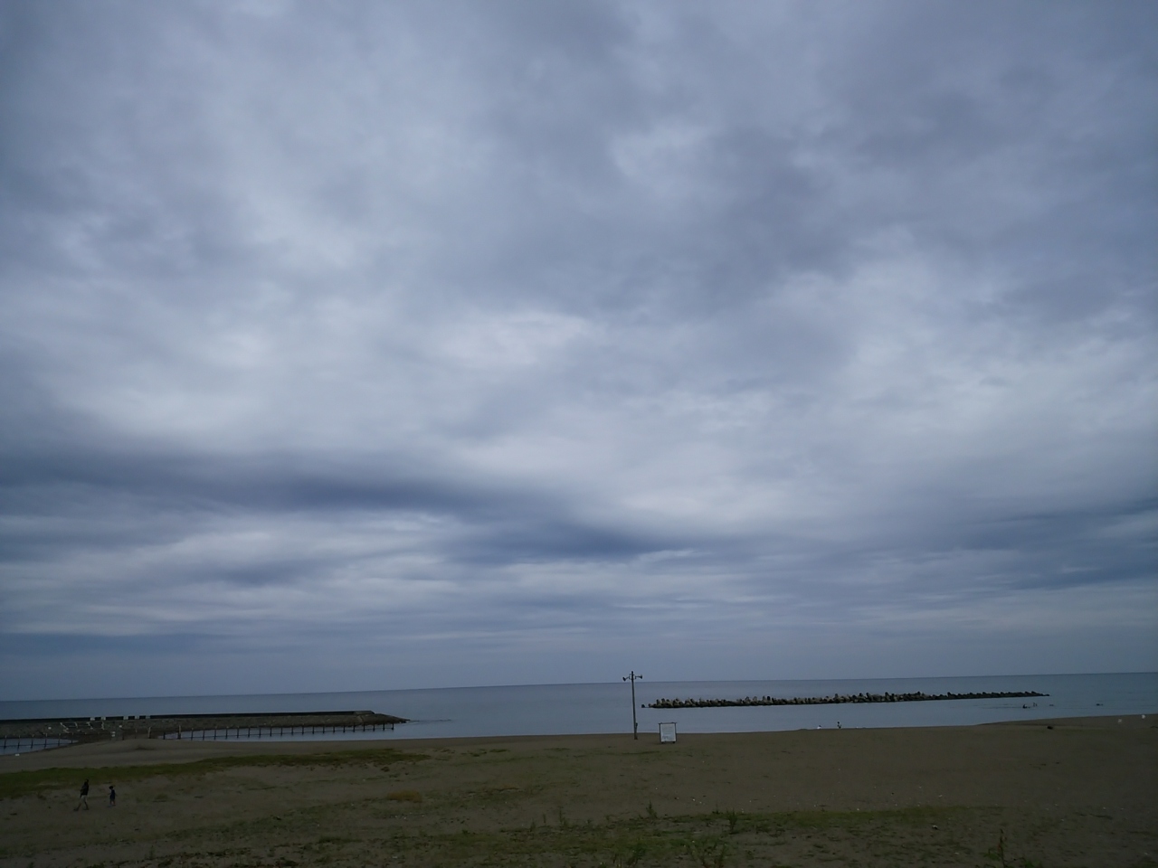 コーヒーを買い建物の2階に上がると、日本海が見渡せました。小さいお子さん連れのファミリーが、海水浴を楽しんでいました。海を感じながらリフレッシュできるパーキングエリアです。