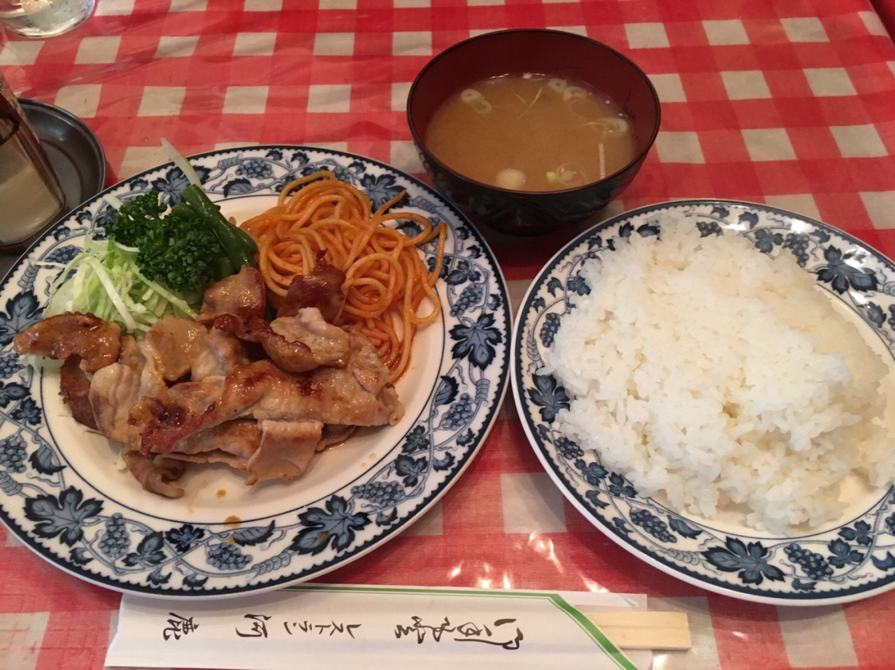 Cランチを注文しました。豚の生姜焼きで、大判のロース3枚を焼き上げてありました。サラダのドレッシングは無く、テーブル上のウスターソースを掛けていただきました。タレがあまり絡んでおらず、ポークソテーのような印象でした。