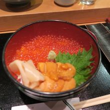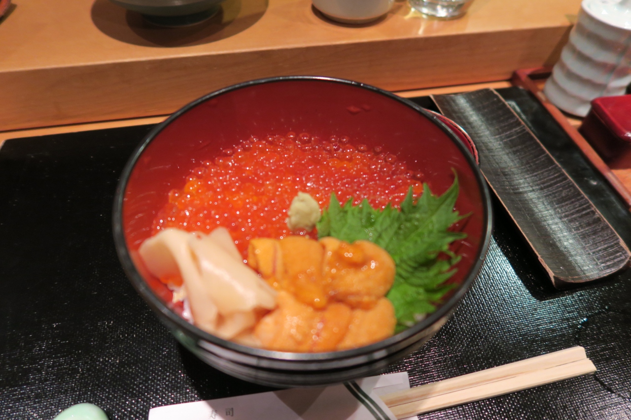 イクラ・うにの二色丼(ごはん半分)、真だちのポン酢、に生にしんの握りをオーダーした。