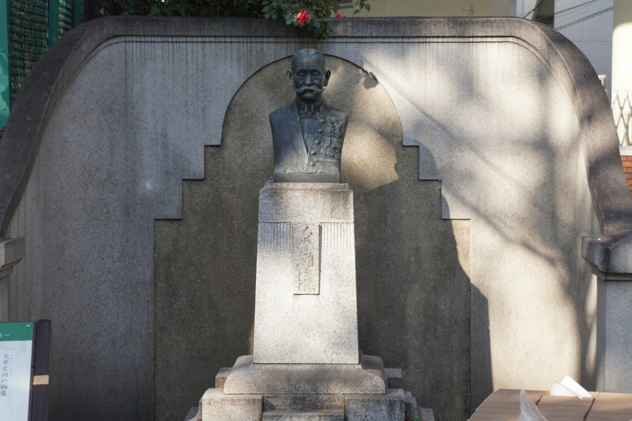 立派な口ひげを蓄えた昔風の風貌ですが、加賀藩出身の薬学者。生薬学という用語を作った人だそうです。その後、神田川の治水工事に尽力、護岸工事を成功させたことで、ここに銅像が出来たよう。多彩な活躍をした人物です。