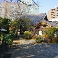 大泉寺は、目白坂沿いにいくつかある寺のひとつ。一番坂の下手にあります。筋壁の山門の横から境内に入りますが、ゆっくりと下っていく感じが特徴的ですね。浄土宗のお寺。本堂の前から山側に向かっては墓地が広がっていて、穏やかな景色となっています。