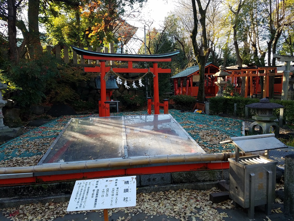 以前表参道の脇にあった蓮池の弁財天社だったものが移転してきたそうで、分かりづらかったですが鳥居の前にあるのは池のようです。