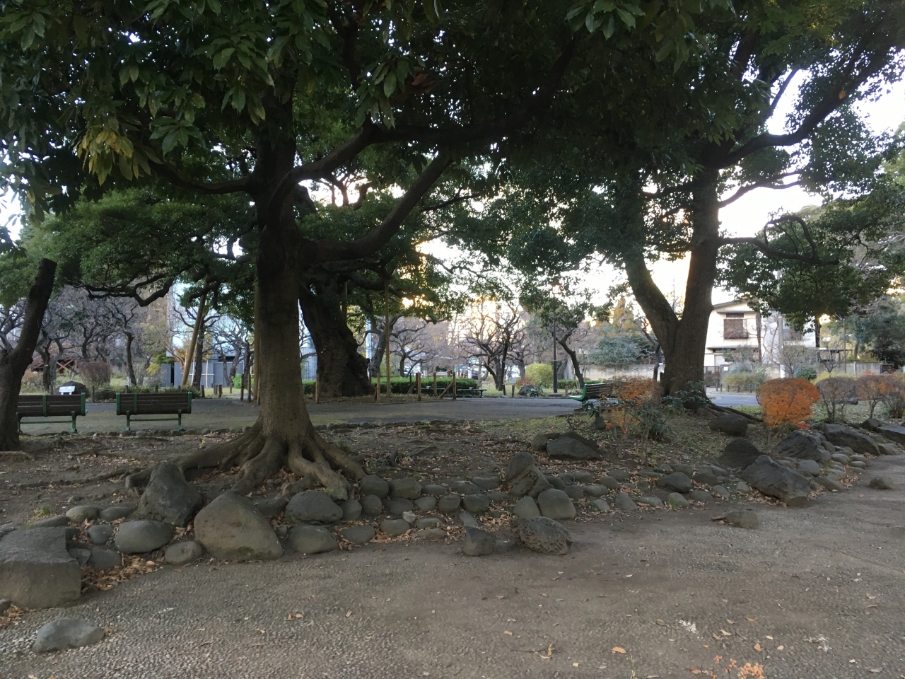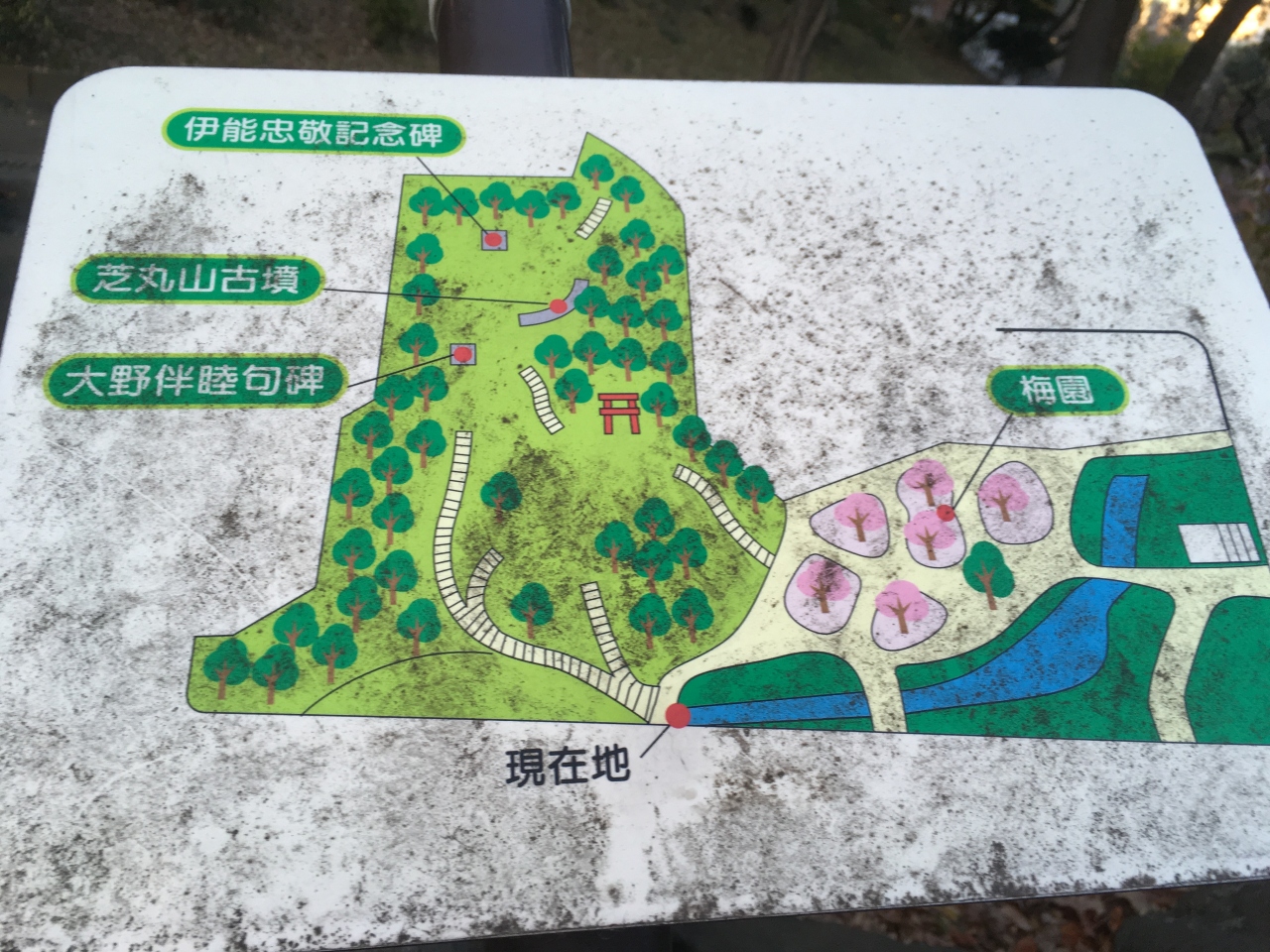芝丸山古墳や伊能忠敬記念碑などがある公園です。小高い丘を登って行かなくてはならず、ベビーカーだったので登るのは断念しました。梅園もあるので花が咲く季節にはとても綺麗なんだと思います。公園までの道中のビル風がけっこう強くて公園にたどり着く間に凍えそうでした。