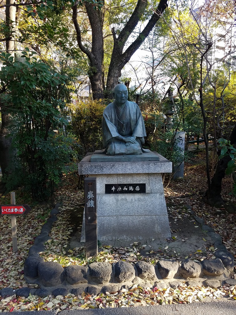 好色一代男で有名な浮世草子の作者ですが大阪の出身なのですね。大阪には他にも井原西鶴の文学碑やお墓があるようです。