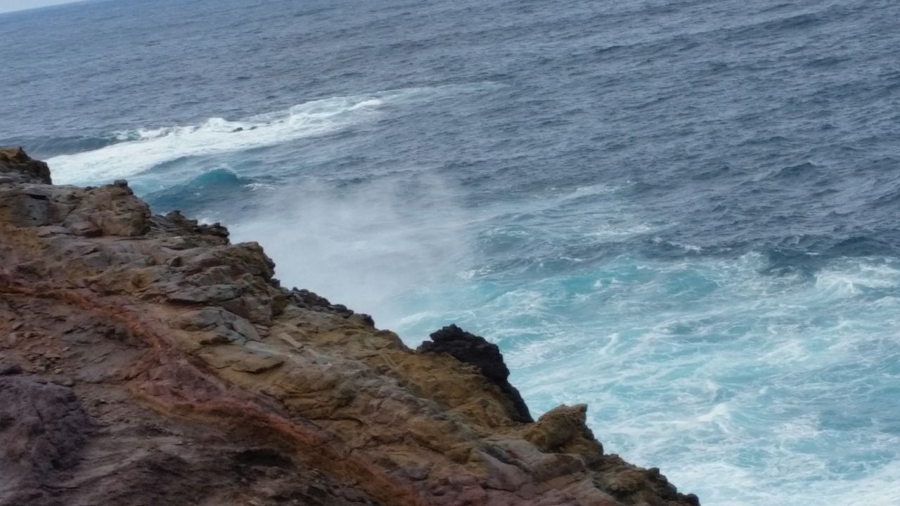 日帰りバスツアーで、元乃隅稲成神社を訪問しました。崖の波打ち際に、砕け散る波以外に、噴水のように吹き上がっている水煙が見えます。それが龍宮の潮吹きです。ぐるっと回って反対側からだと、ちょっと遠いですが、噴水のようなものが吹き上がっている様子が良く見えます。