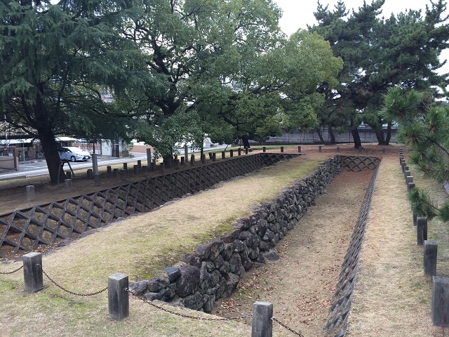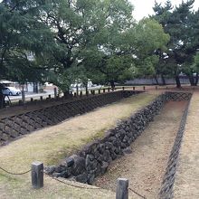 ちょっとした公園みたいになっていて、そこに石垣の様な史跡がありました。犬の散歩をしている人もいたので、本当に今は公園としても利用されていると思います。