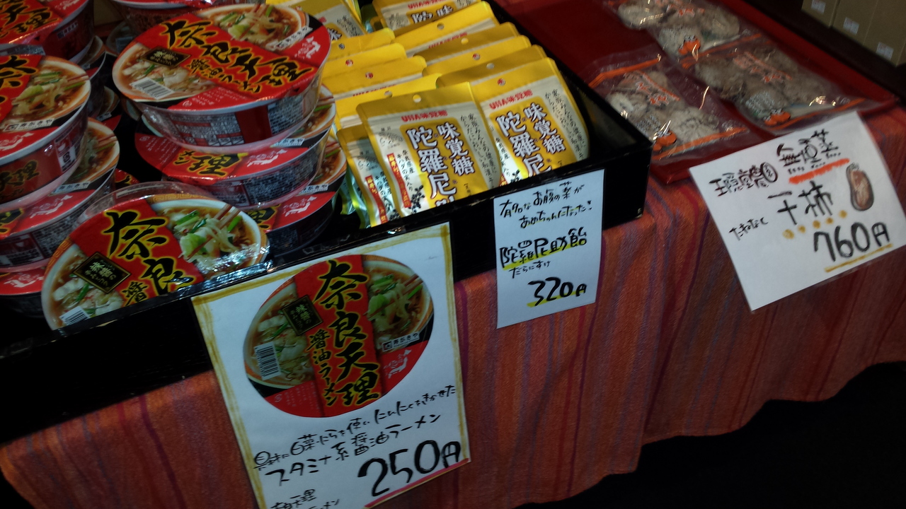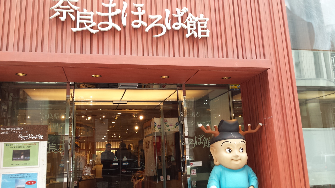 日本橋、三越の反対側に在るのが奈良県のアンテナショップの"まほろば舘"が在ります。店前にキャラクターの"せんとくん"の飾り物がありますので、すぐにわかります。奈良県の農作物、食料品を販売していますし、奈良県の観光案内もしています。日本橋もアンテナショップが多いエリアです。