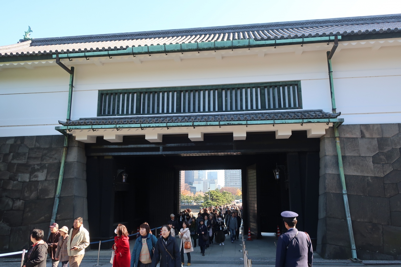 皇居 西の丸にある宮内庁の出入口となっている櫓門です。普段は厳重に皇宮警察によって警備されており、入ることが出来ませんが、乾通りが公開が公開される秋の一週間は入場門として坂下門を通り抜けることが出来ます。