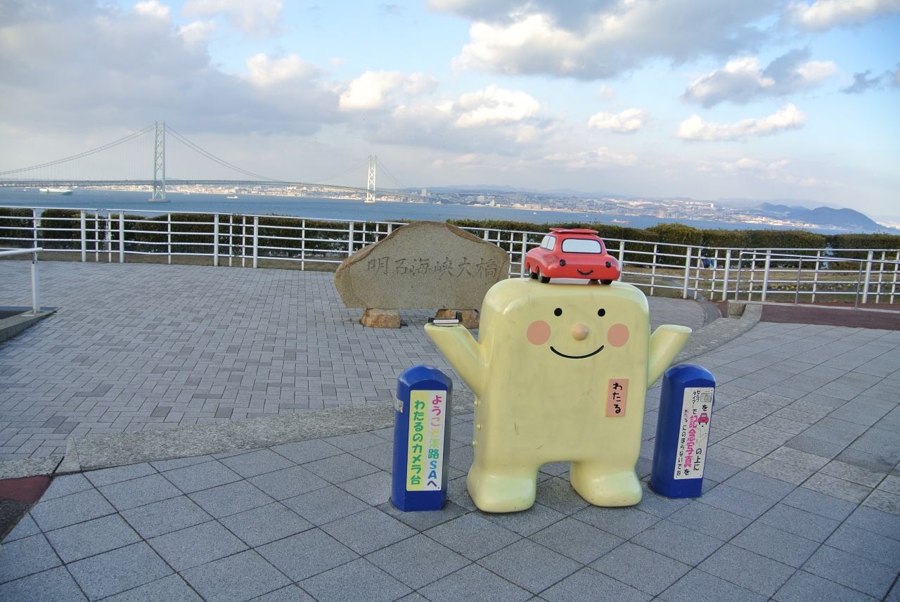 とっても広くて観覧車もあり、ここがひとつの観光地といったところです。明石海峡大橋の素晴らしい景色を見ることもできます。絶好の写真撮影スポットですね。一月ということもあってか、駐車場がいっぱいということはなく、人出もそれほどではなかったです。