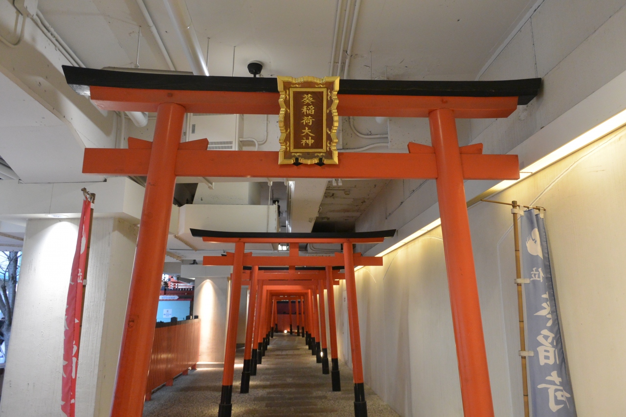 なんばパークスを歩いていてたまたま見つけました。こんなところにお稲荷さんが・・。建物の下にお稲荷さんらしく赤い鳥居が連なっていました。なんばパークスに建て替えるときに昔からあったお稲荷さんをこのように整備したのでしょうね。近代的なビルに神社の組み合わせが興味深かったです。