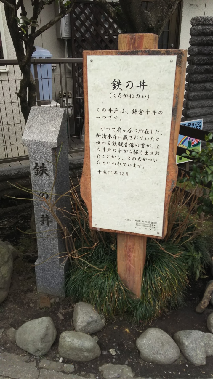 鎌倉十井の一つの鉄ノ井(くろがねのい)は、観光客でごったがえす小町通りの端っこにある井戸です。
