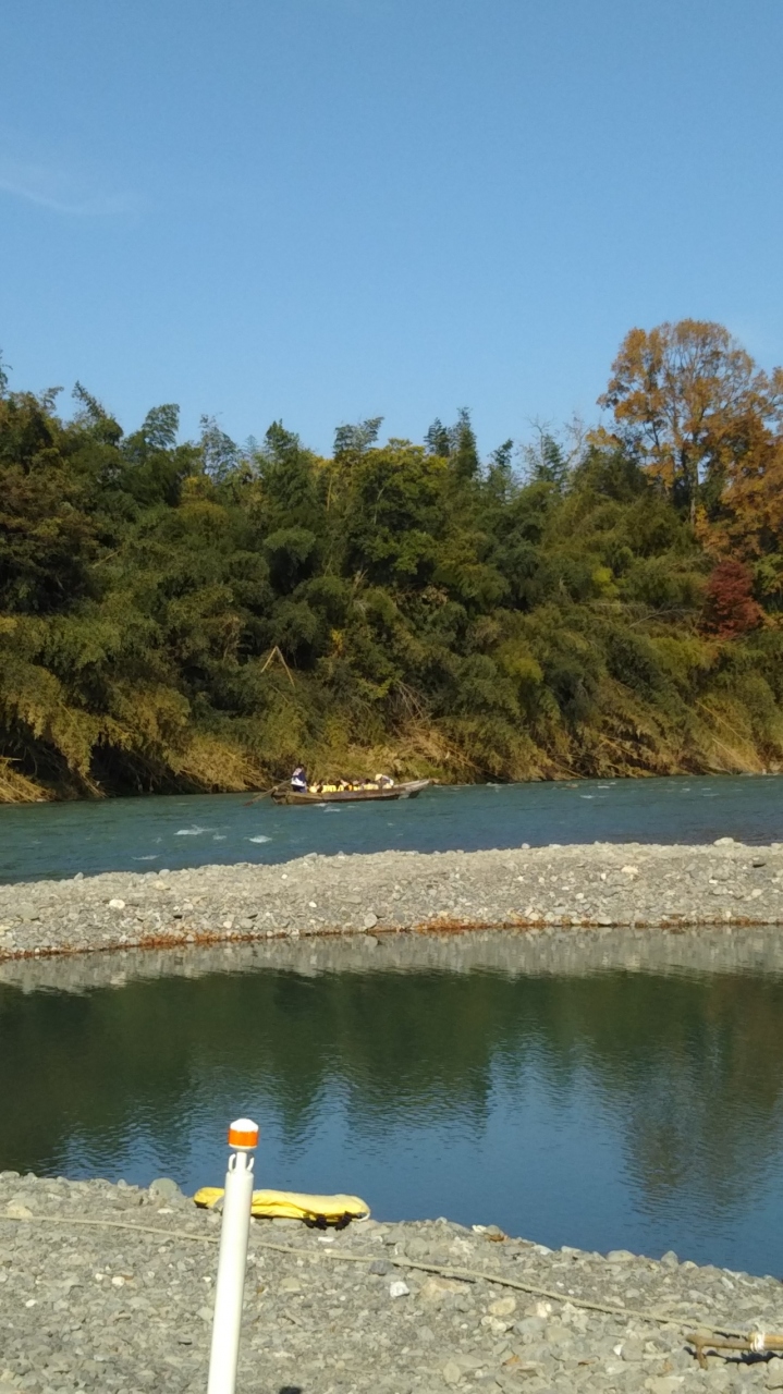 ネットで予約して初ライン下りです。窓口でお金を払って乗り場までバスに乗ります。Aコースの急流の方でした。構えてたせいか、それほどではありませんでした。でも船頭さんの合図で、ビニールをたてて水しぶきを防いだりして、楽しかったです。