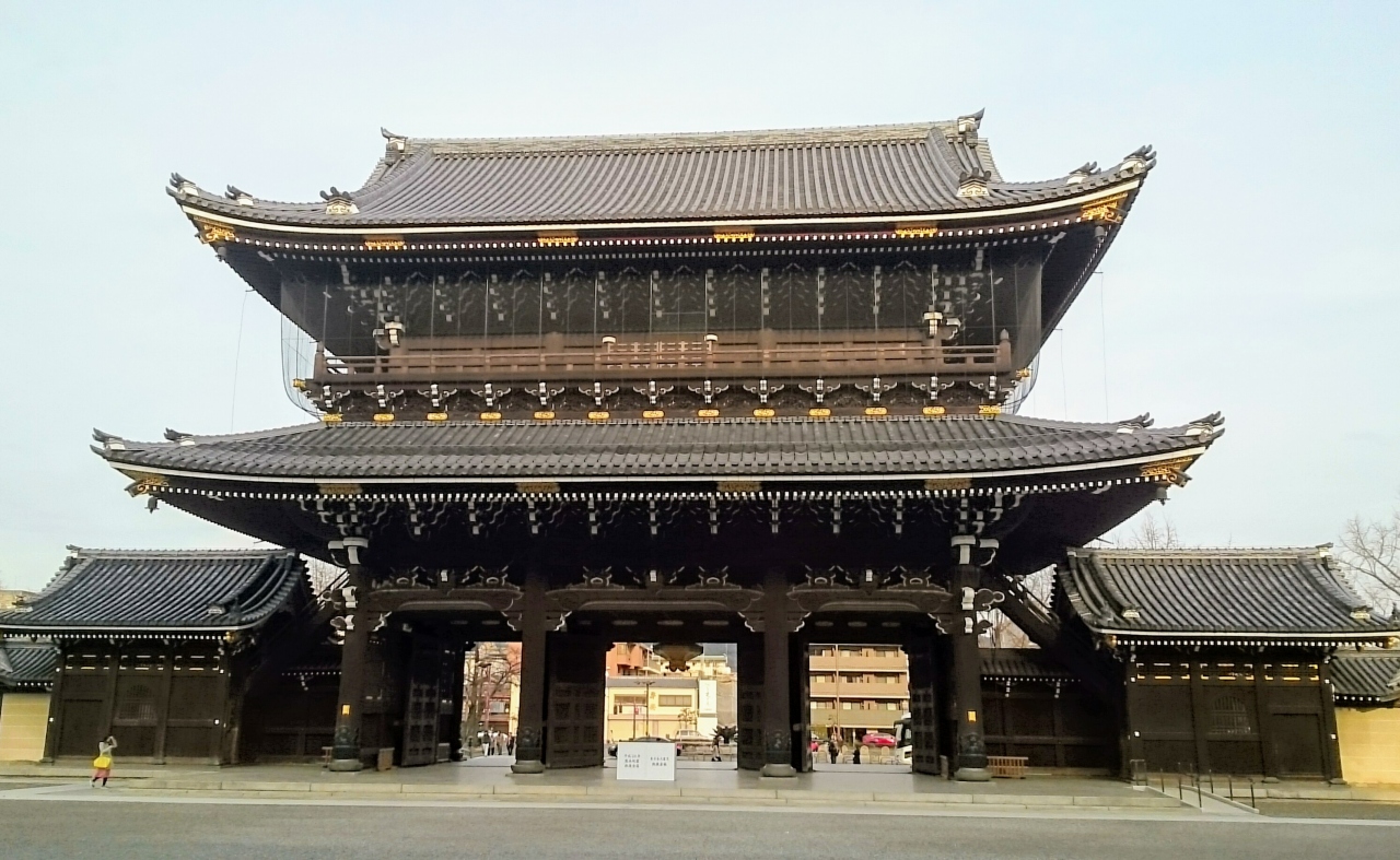 中央に聳える「御影堂門」の大きさと、その先に建つ世界最大木造建築の「御影堂」の広さはさすがです。