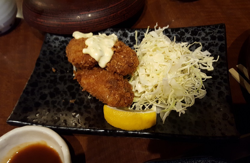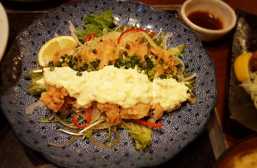 少し早い時間に入店したので、炭火を使う焼き物は注文できませんでした。鶏料理がメインで、ほかは厚揚げやカキフライなど(ただし、厚揚げも焼き物なので、炭火タイムになってから)。シーザーサラダもスモークした鳥が入ったものを注文しました。