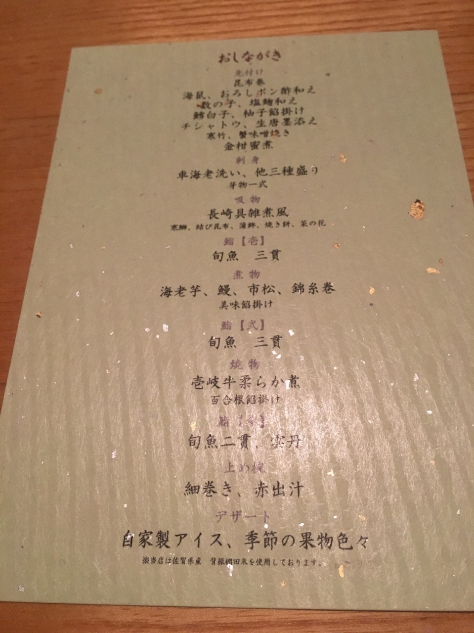 いただいたのは、「芍薬(しゃくやく)」、10,800円、最高でした。お造りははもちろん、壱岐牛のステーキもよかったです。その中でも、やっぱり良かったのが鮨。3回に分けて出てきます。