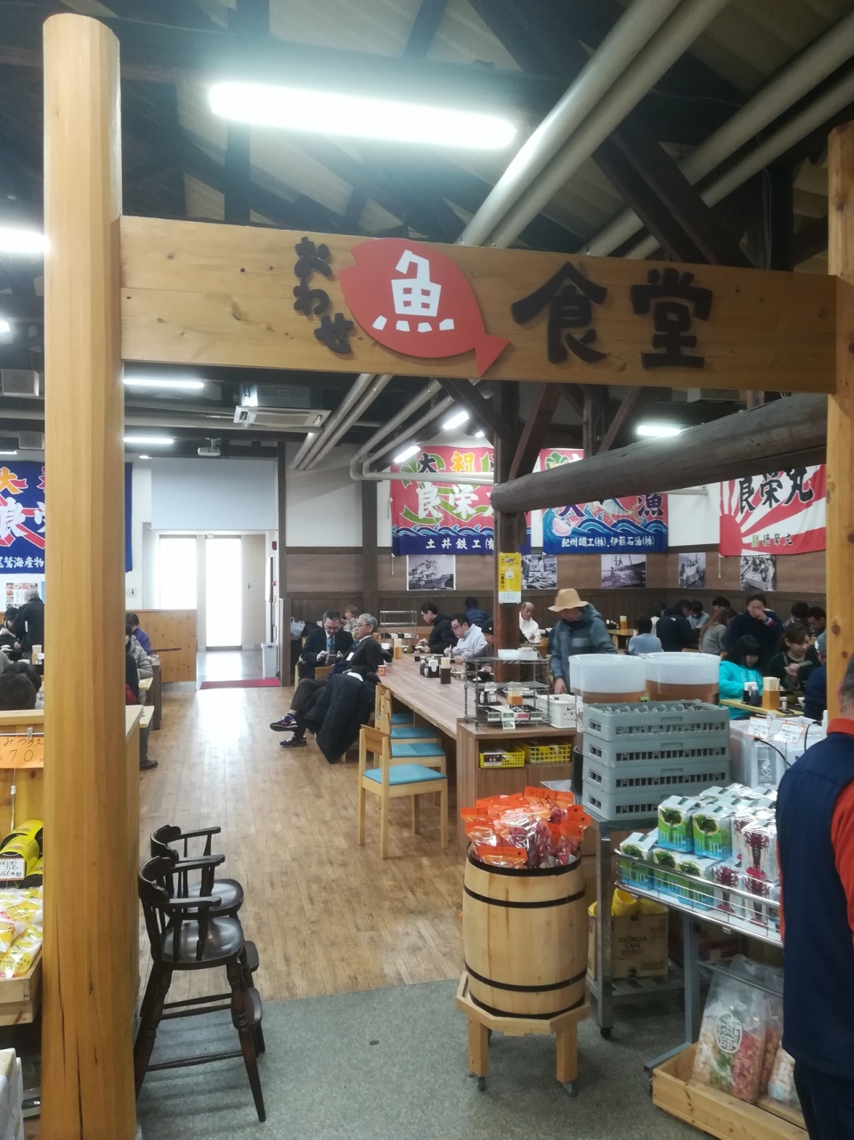 国道42号線沿いにある、お土産物兼食堂です。セルフ形式で好きなおかずを選び、ごはん、みそ汁、丼ものを注文してお会計します(ザめしやと同じです)、僕はお刺身と鯛茶漬け(680円)を頼みました、白ご飯と迷いましたが鯛茶漬けとっても美味しかったです。ただ難点は焼き魚、煮魚等が電子レンジで暖め直して食べるところかな、焼きたてが食べたかったです