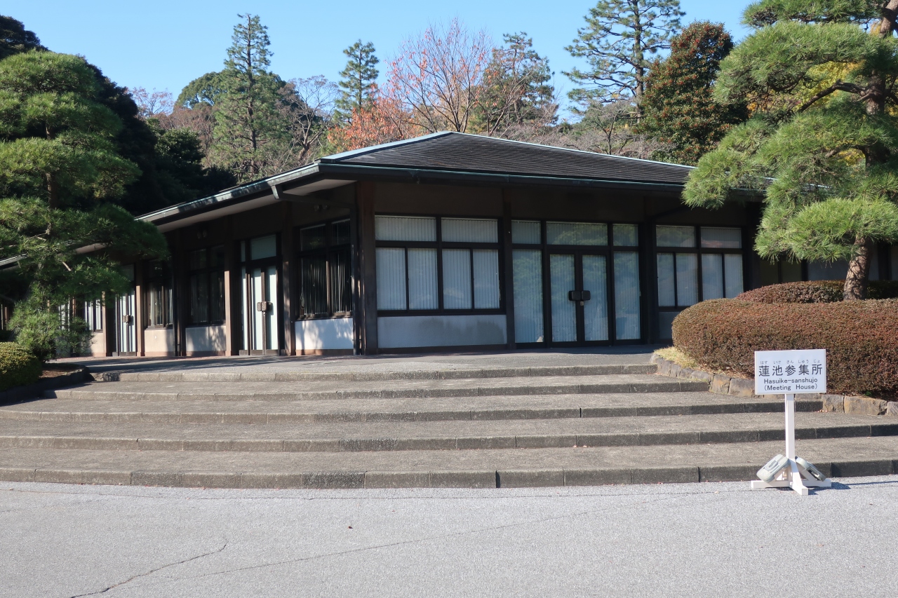 皇居西の丸 坂下門から入った宮内庁の先に蓮池参集所があります。こちらの建物も普段は見られませんが、乾通り通り抜け一般公開の際に見ることができます。