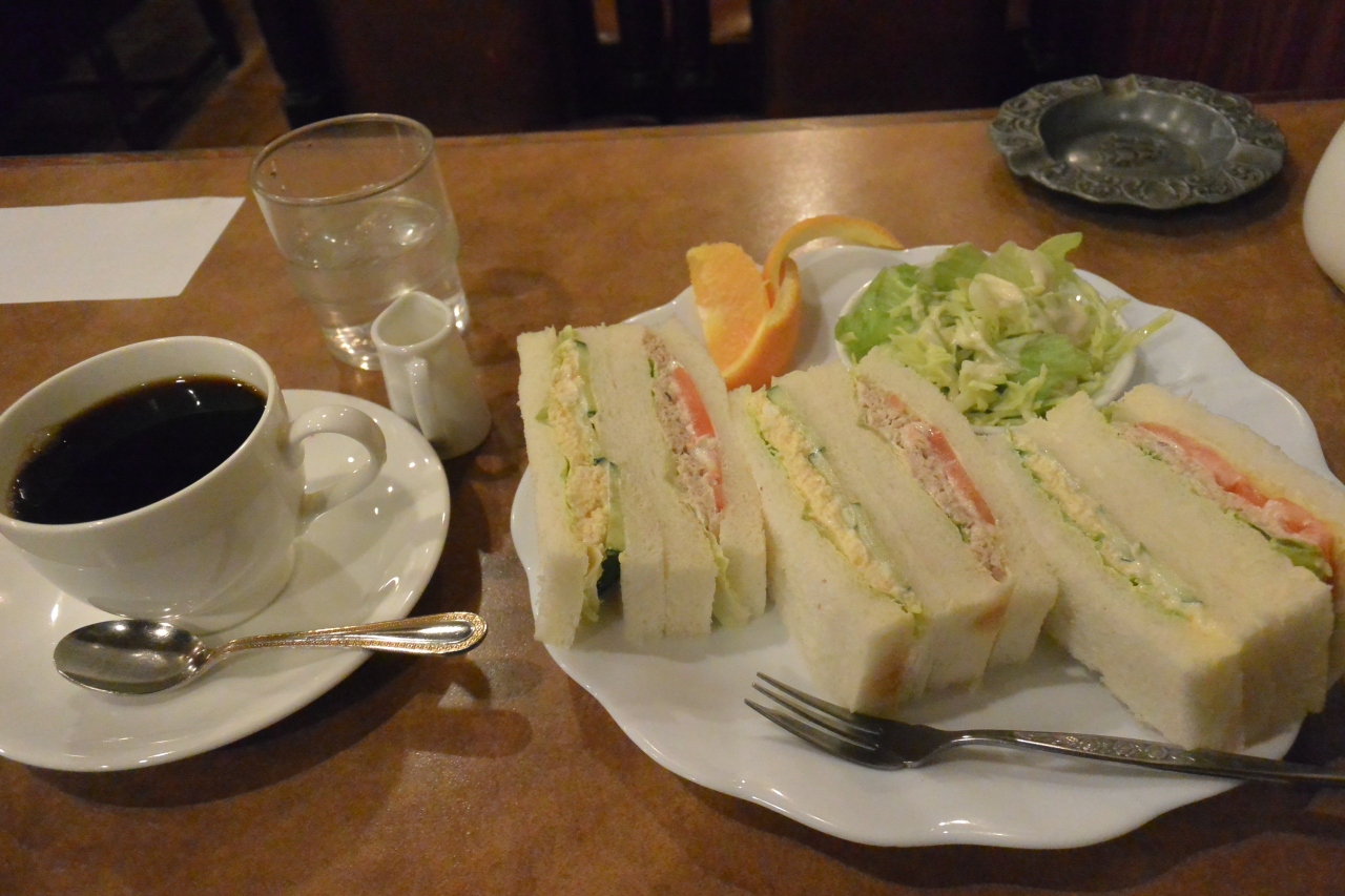 天神橋筋商店街にあり、大阪天満宮の近くにあります。昔ながらの喫茶店という風情を強く残しています。食事メニューはサンドイッチやホットドッグなどパン類のみ。(ピザも一種類ありました)アレンジランチというランチセットはサンドイッチと飲み物で750円でした。サラダとフルーツ付きで、サンドイッチは具の量が多くてお腹いっぱいになりました。
