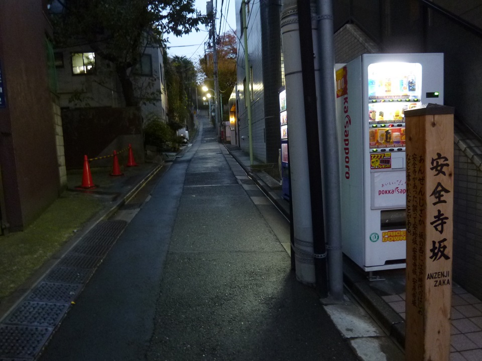 三田界隈を散策した際に通った坂の一つで、丁度慶應義塾大学の正門の向かい側あたりから登っていく細い坂道です。潮見坂と繋がりその先には聖坂までアクセスすることが出来ます。坂の入り口にはジュースの自販機があるので、上り始める前にドリンクを購入して上がり始めると良いですね。