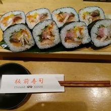 節分の日に利用したため、海鮮恵方巻をいただきました。テイクアウトで買われている方が多かったが、座席には方位磁石が置いてありました。オーダーのときには店員さんには、切るかどうかきかれました。おいしかったです。