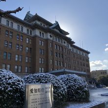 仕事で愛知県庁を訪問する機会がありました。地下鉄の市役所前駅を降りて、左が県庁、右が市役所です。屋根は名古屋城を模した形をしています。建物はおそらくは大正時代のもので、さらにあまり改装していません。暗い分、当時の面影を残しています。
