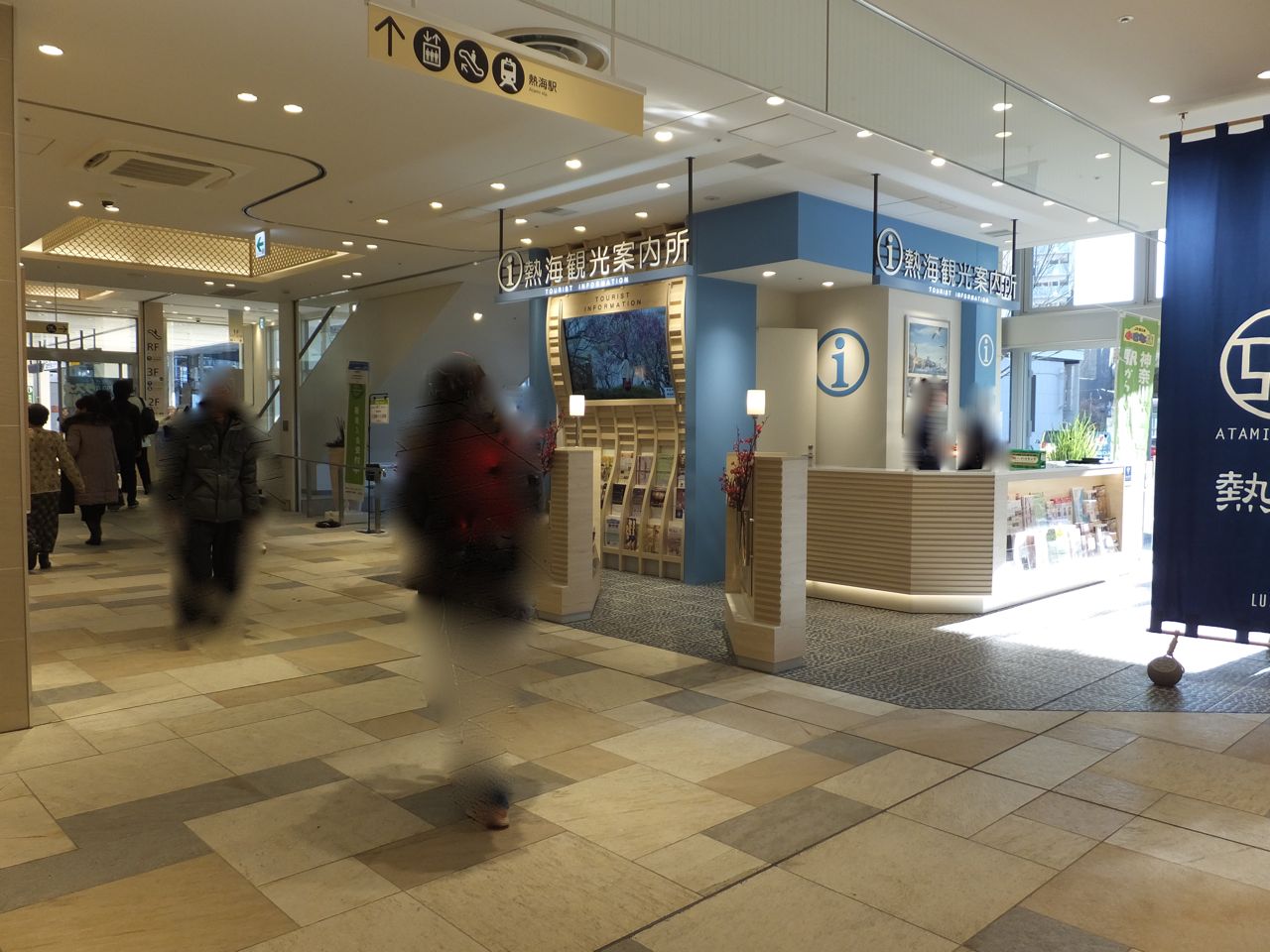 熱海駅のコンコースから駅ビルの商店街に入ってすぐあたりにあります。駅から直結でないのでちょっと見つけにくいかもしれません。それにカウンターが駅から入ってくると振り返った方向なので見落とすかも。