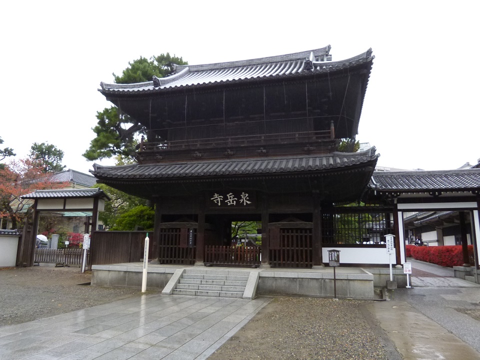 泉岳寺駅からほど近い場所にある泉岳寺を訪れました。中門をくぐると目の前に大北2層の門が見えますが、これが山門です。関東大震災や先の大戦の空襲にも耐えて今に残り江戸時代後期の建物で非常に見ごたえがありました。大きな「泉岳寺」の扁額が掲げられていました。