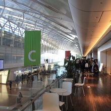 羽田空港第2ターミナルビル3階の中央付近からディスカバリーミュージアム前まで細長く様々な店舗が軒を並べています。店舗前のデッキにテーブル席がありそちらで食事が出来ます。土曜日でしたが午後3時頃だったので空いていました。デッキは開放的なところが良かったです。