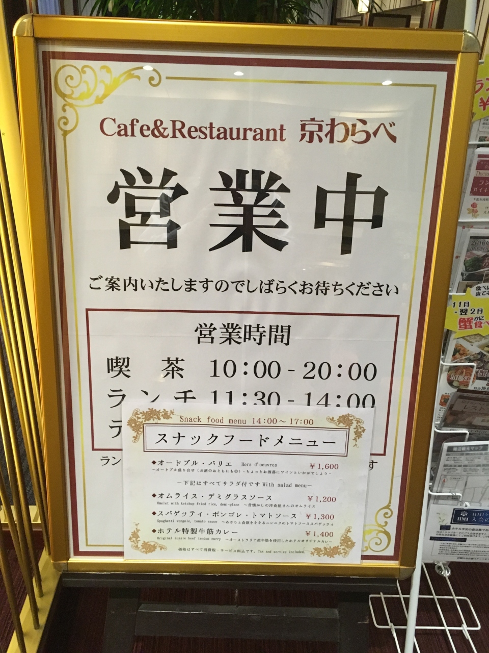 岡崎神社隣の便利な場所にあるホテルのダイニングです。昼食と夕食の間の時間帯もオープンはしていますが、メニューが少ない状態で営業しているので、喫茶店としても使えます。さほど混雑しないので、岡崎神社などをめぐったあとにお茶をするのにもいい場所です。