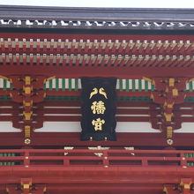 大石段を上りきると、桜門。写真の様に八幡宮の八の字が鳩になっています。参拝後、御朱印を頂いて帰りました。