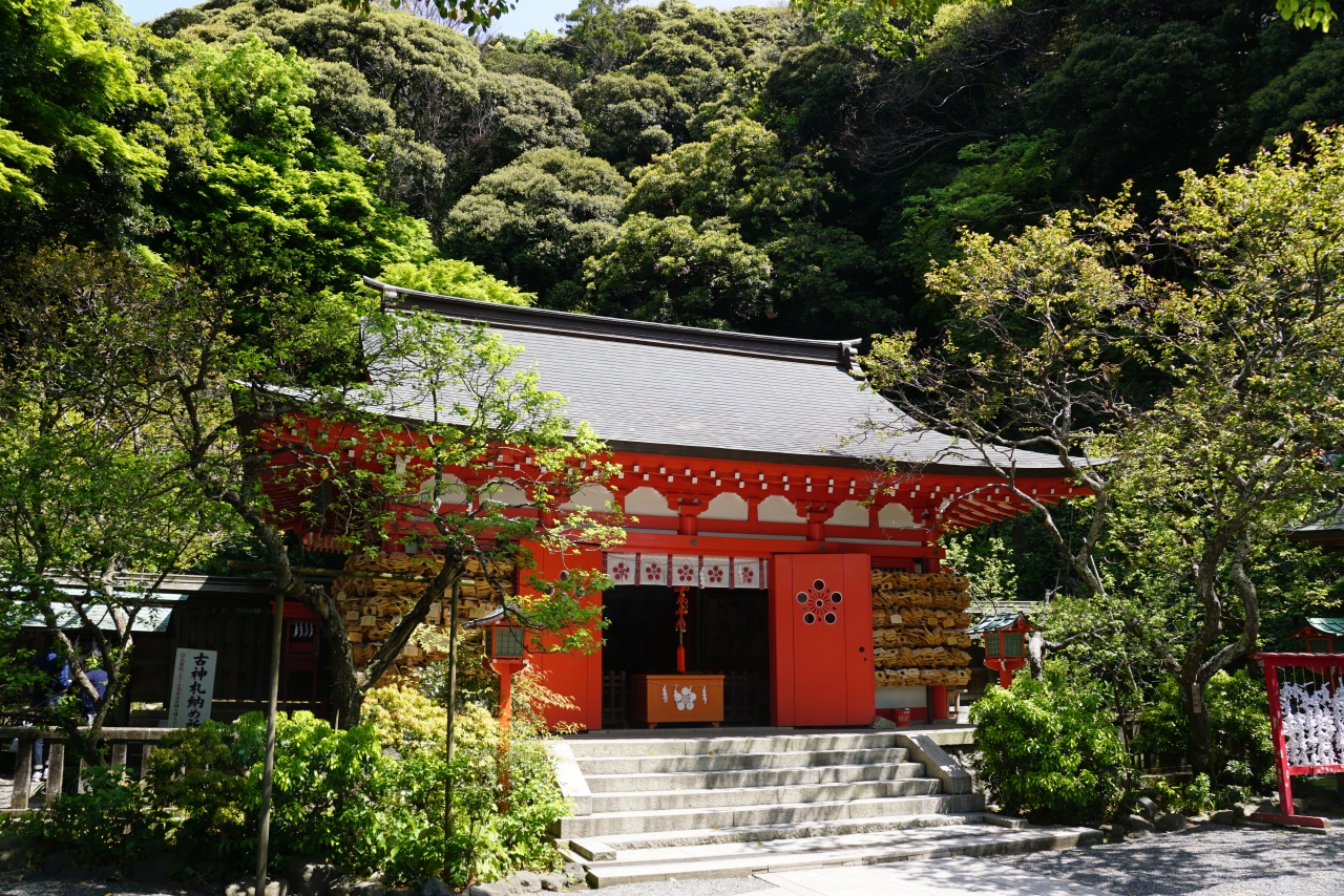 鶴岡八幡宮から住宅街を抜けて歩いて行きます。急な階段を上って、小さな御社があります。梅で有名な神社でうが、ゴールデンウィーク中に行った為、梅はとっくに終わっています。参拝後、御朱印を頂いて帰りました。