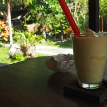 ここの生マンゴースムージーはレンタル自転車やさんがおススメしてくれました。1000円だけどとっても美味しいです。隣でランチをされている方もいてとっても彩りよく美味しそうでした。灰皿も貝殻でオシャレでした。