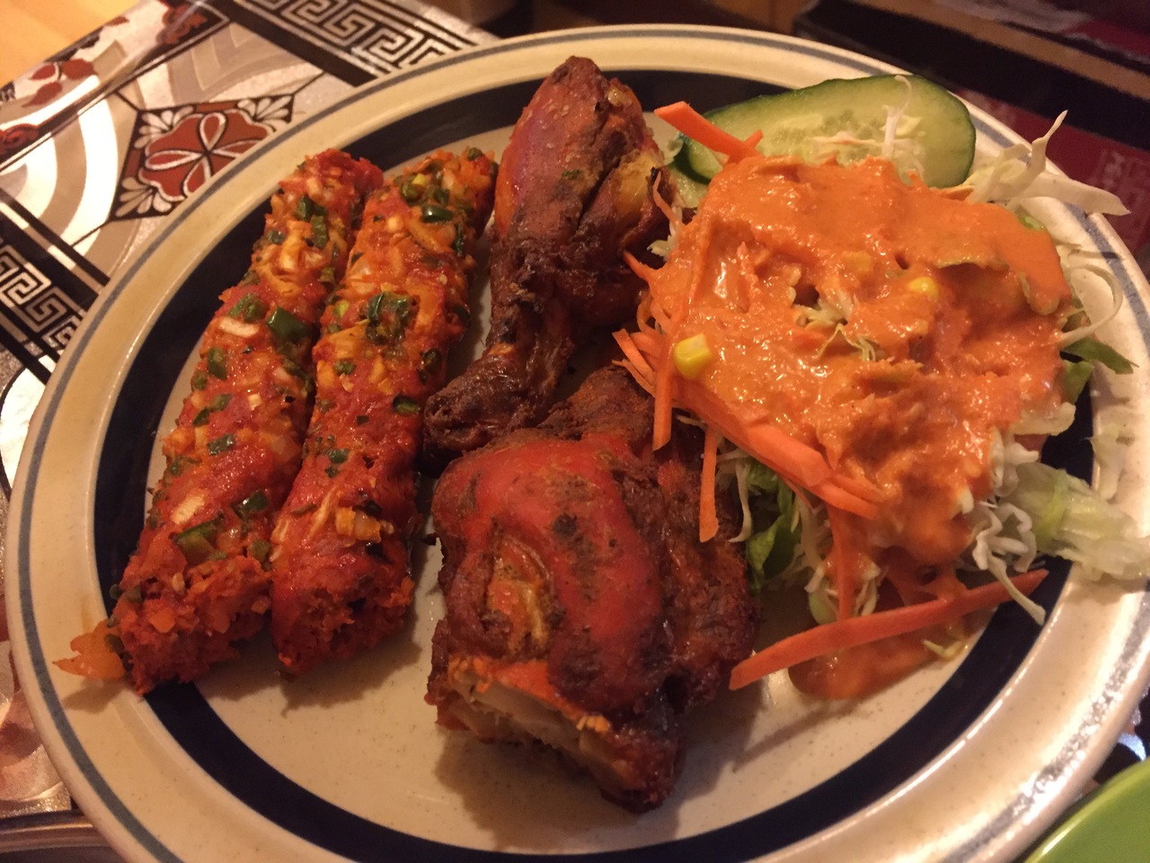 近所に一軒あると嬉しいインド料理店、ついに見つけました!路地に入った一角にいかにもな佇まいです笑 メニューには1人でもうれしい晩酌セットやレディースセットもあってこの辺を軸にすると、飲み食いしても本当に安上がり。手作り感満載のシシカバブが美味でした。