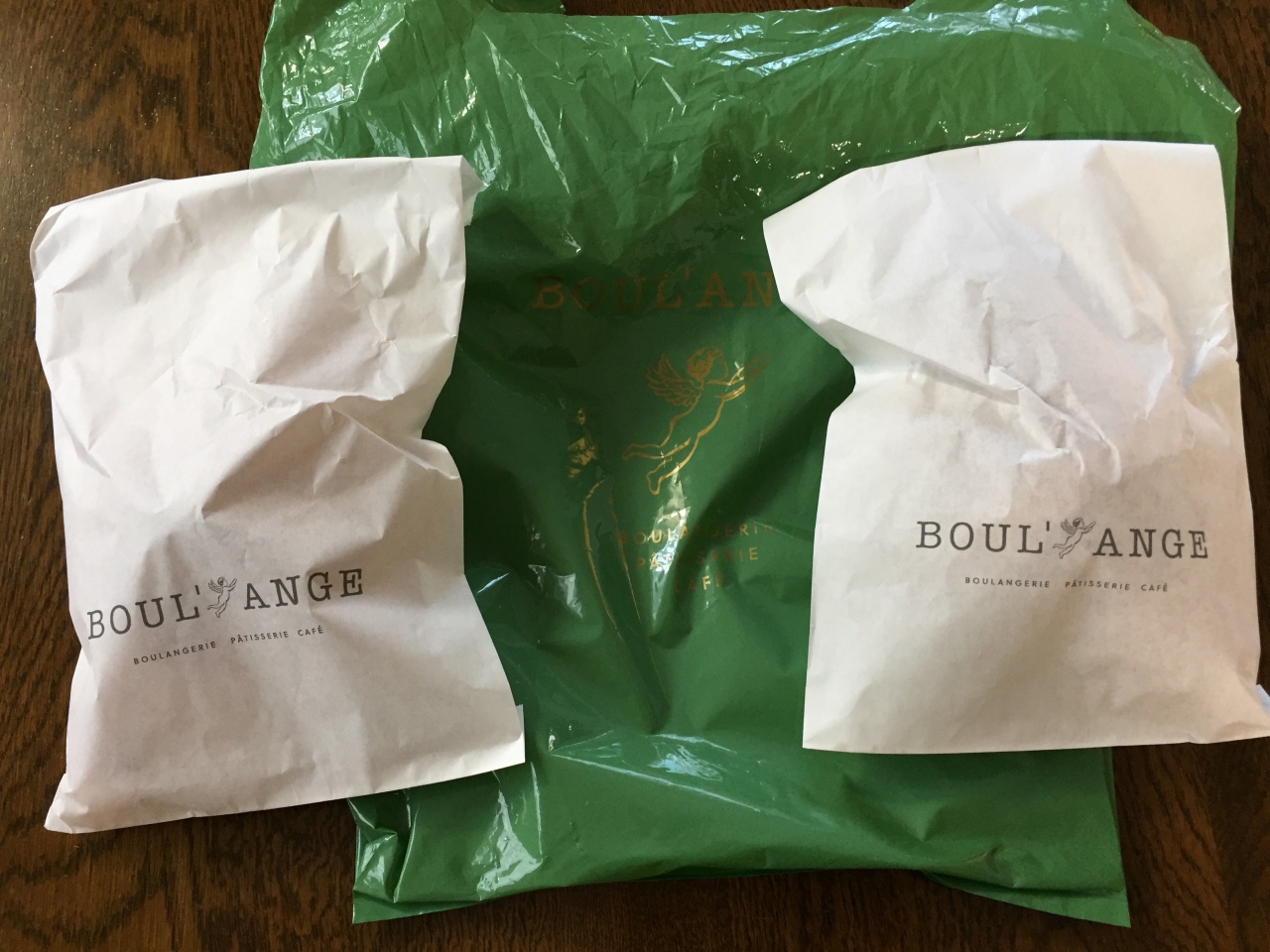ゴントラン・シェリエから店名が変わりブールアンジュになりました。店名が変更しただけで中身は全く同じです。あ、袋の色も変わりました(笑)。人気NO.1のクロワッサンが180円であることも同じです。2階のイートインスペースは相変わらず満席でした。