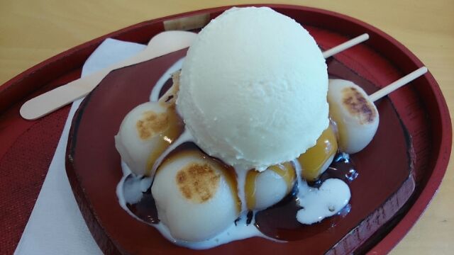 基本は京都の嵯峨野のアイスクリーム専門店でもあるのですが、和菓子とアイスクリームのコラボメニューが頂けるという、スイーツ好きにはたまらない、お店です。お団子大好きな人には是非アイスクリームと一緒に食べて欲しいですね。店内飲食なら、ほうじ茶サービスしてくれます。