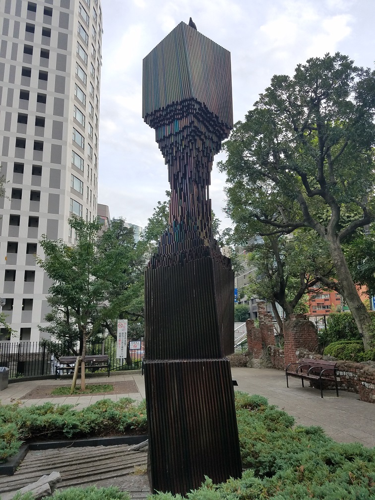 何やらオブジェも建っていますが木々の緑と不思議な調和を感じます。