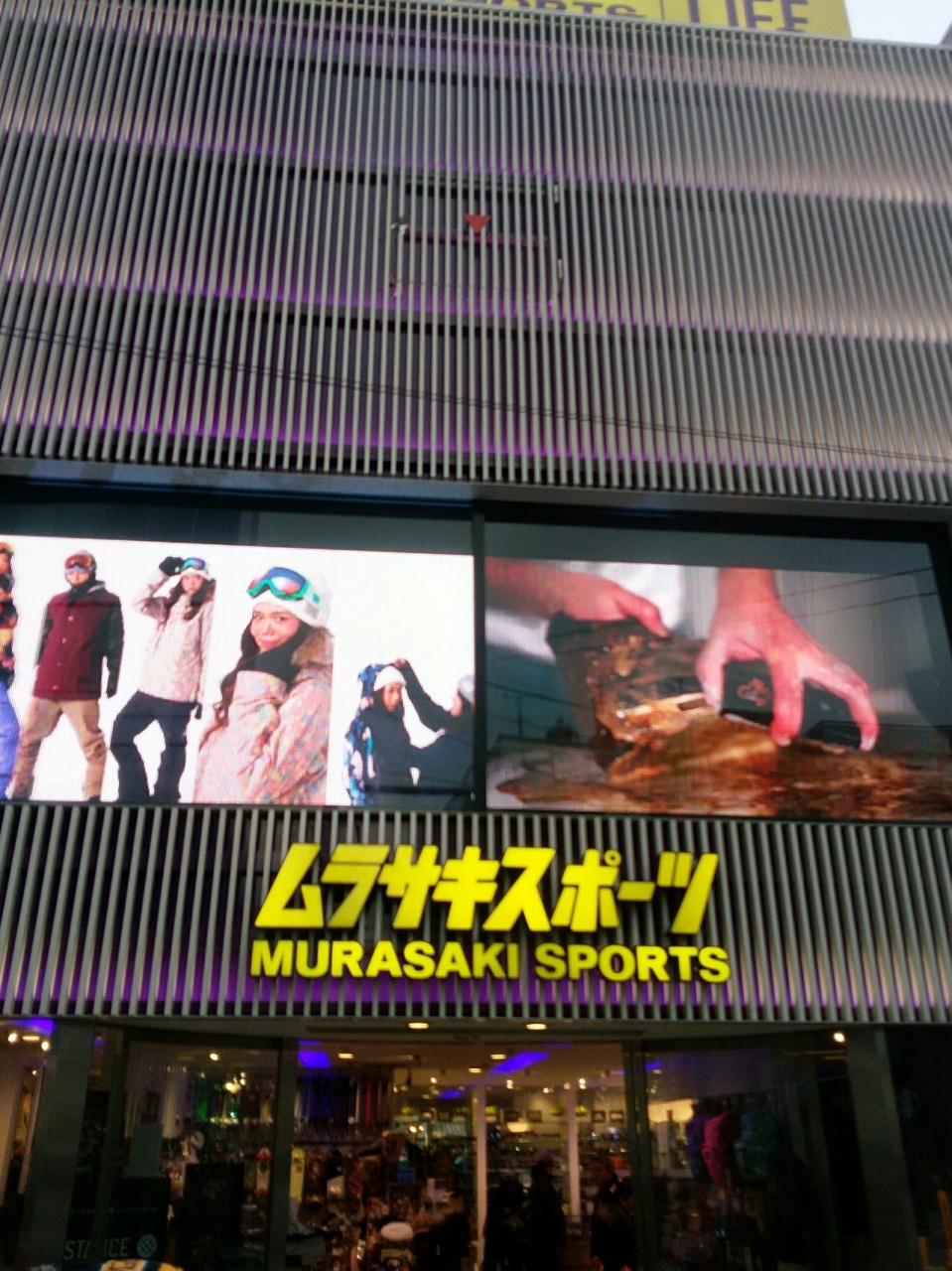 原宿の竹下通りを抜け、明治通りを渡ったところにあるムラサキスポーツです。スポーツ用品の量販店ということもあり、店内はスニーカーの品揃えが充実しているので、スニーカーを買うならオススメのお店です。また、この季節はスノボなどの商品も充実しているのでこちらもオススメです。