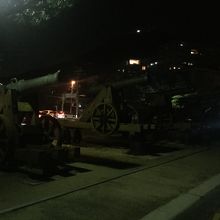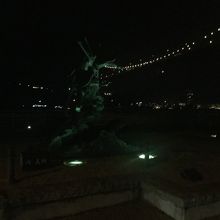 源氏と平家の最後の戦いとなった壇ノ浦合戦の跡でみもすそ川公園内にあります。開門海峡を望む場所で一番狭まった潮流の流れが速い所です。源義経と平知盛像があり大河ドラマ「義経」の実演者小泉孝太郎、滝沢秀明、松坂慶子の手形があります。幕末の下関戦争時の長州砲のレプリカもあり空胞を鳴らすこともできます。