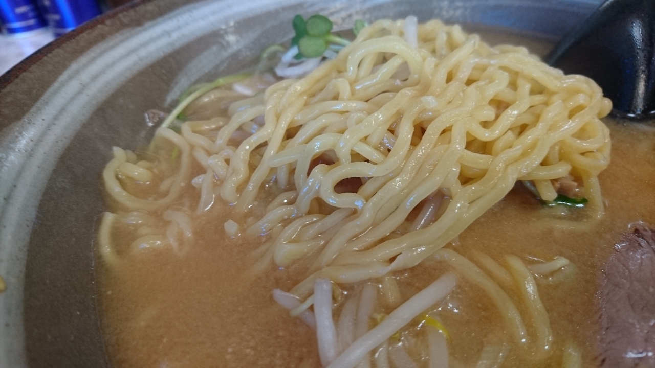 モヤシ・メンマ・カイワレ・チャーシューがトッピングされていたラーメン。味噌スープはちょっと味が薄い感じで、物足りなさを感じました。