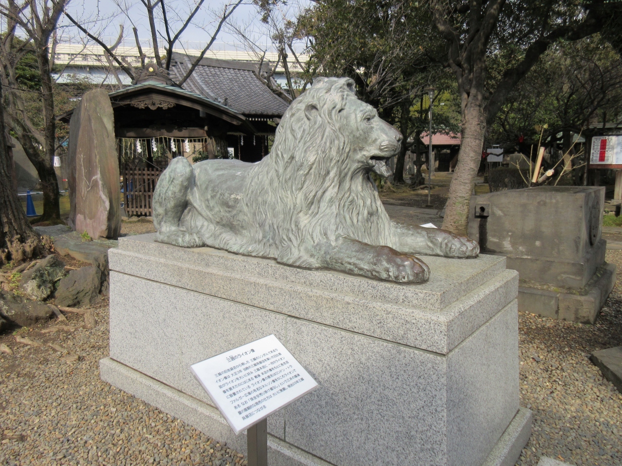 隅田川七福神の中の大黒神と恵比寿神が祀られている神社です。三井家の守護神で、境内には三越池袋店に飾られていたライオン像のほか、室井其角の句碑や近代百貨店の創始者・日比翁助の歌碑、三井邸にあった三角石鳥居、三井稲荷の白狐祠を守った老夫婦の石像など、50ほどの石碑が置かれています。各石碑に関する解説書も売られています。本殿を守る穏やかな顔をした狐の像も可愛らしかったです。見どころがたくさんある神社だと思います。