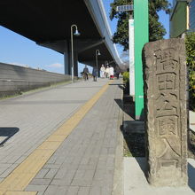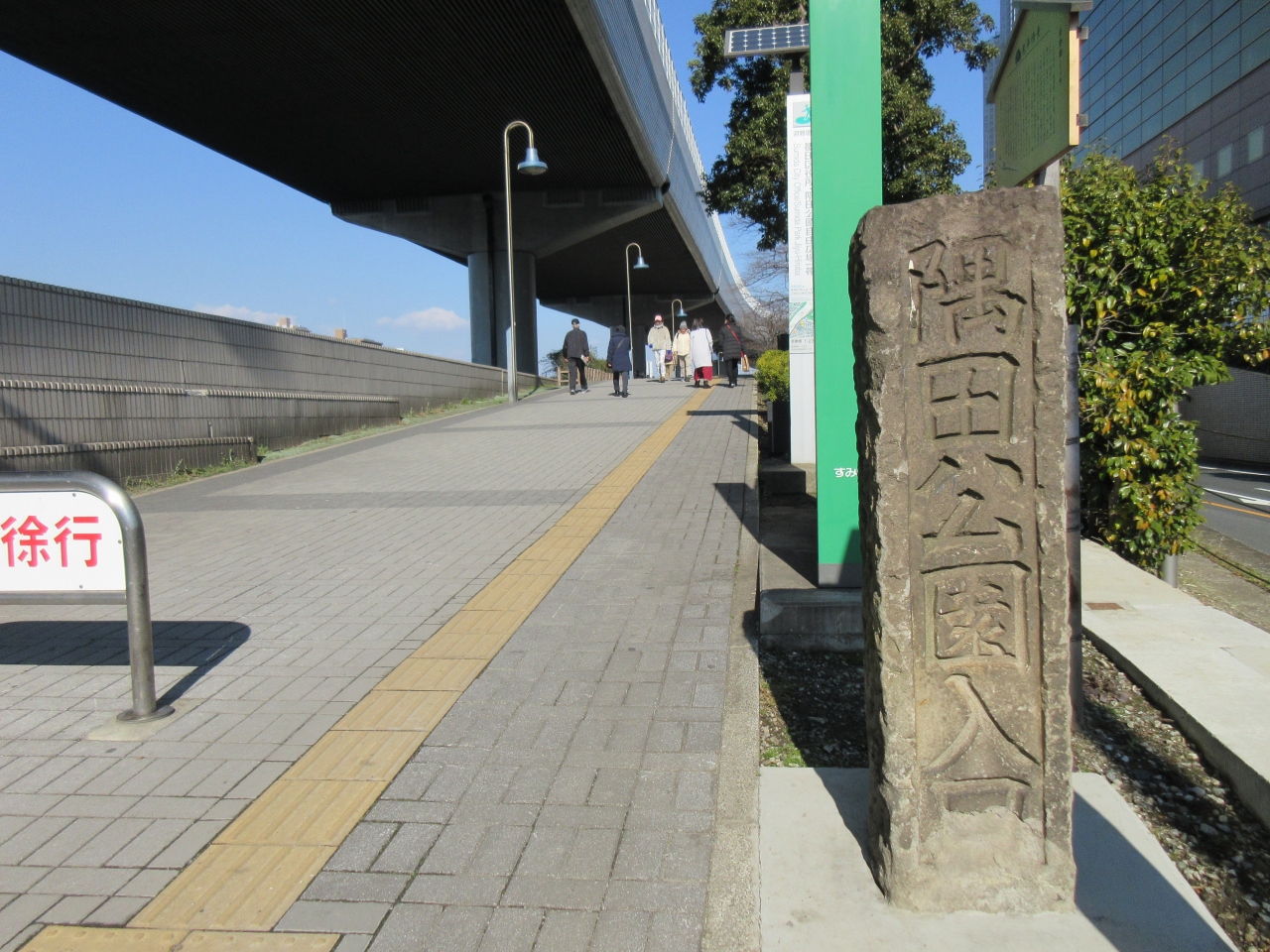 隅田川を挟んで二か所に分かれている、スカイツリー側の隅田公園入口に立っています。歴史が感じられる古そうな石には隅田公園入口の文字が大きく彫られています。桜の名所として知られる公園入口に立つにふさわしい、堂々とした標柱だと思います。