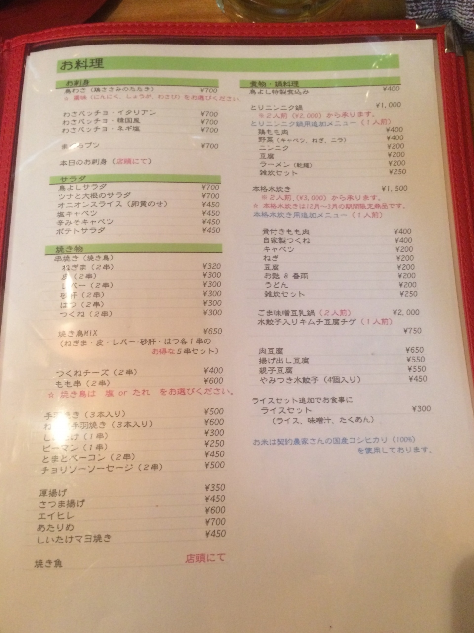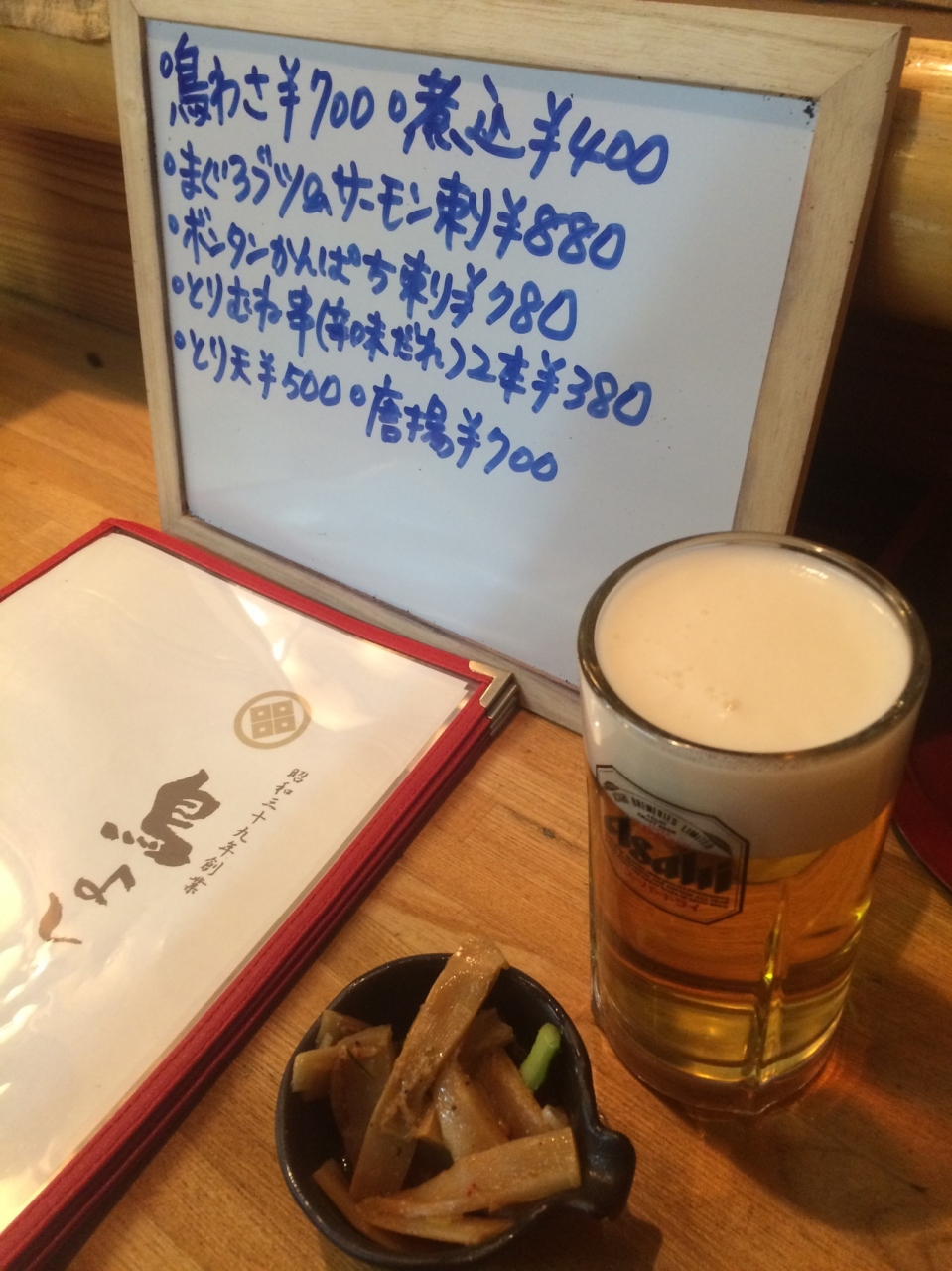 焼き鳥がメインの店ですが、それ以外にもメニューがたくさんあり、飲み物も充実していました。お通しで出てきたメンマがかなり美味く、また煮込みが絶品で量も多かったです。焼き鳥は普通でした。カウンター席が長く、座敷もあります。