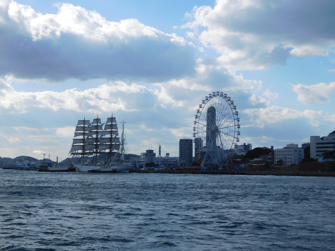 山口県の下関と福岡県の北九州市門司地区の間の海峡です。車なら関門橋を渡る。電車なら関門トンネルをくぐる。船なら連絡船です。どれを使ってもすぐです。今回は、小倉から電車で下関に行き、下関唐戸から連絡船で門司港に渡りました。船からは、唐戸港に停泊する帆船、関門橋、門司港レトロ地区の建物群がよく見えます。