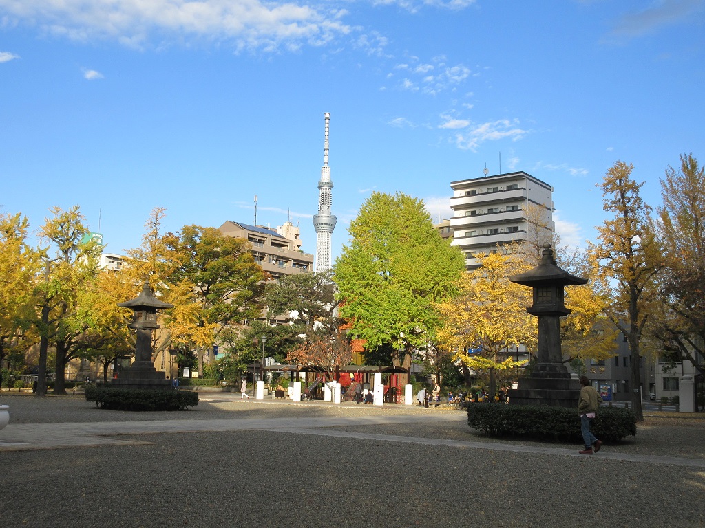 両国散策の際、旧安田庭園の見学後に横網町公園を訪問しました。常緑樹に交じってイチョウの木もある、訪れた11月には丁度色付き始めていました。青空の下、遠くにスカイツリーを仰ぎながら子供たちが遊んでいる姿に癒されました。ここは、関東大震災の際に多くの避難民が集まり、炎にまかれて大勢の犠牲者が出た場所でもあります。東京都慰霊堂や復興記念館もあります。