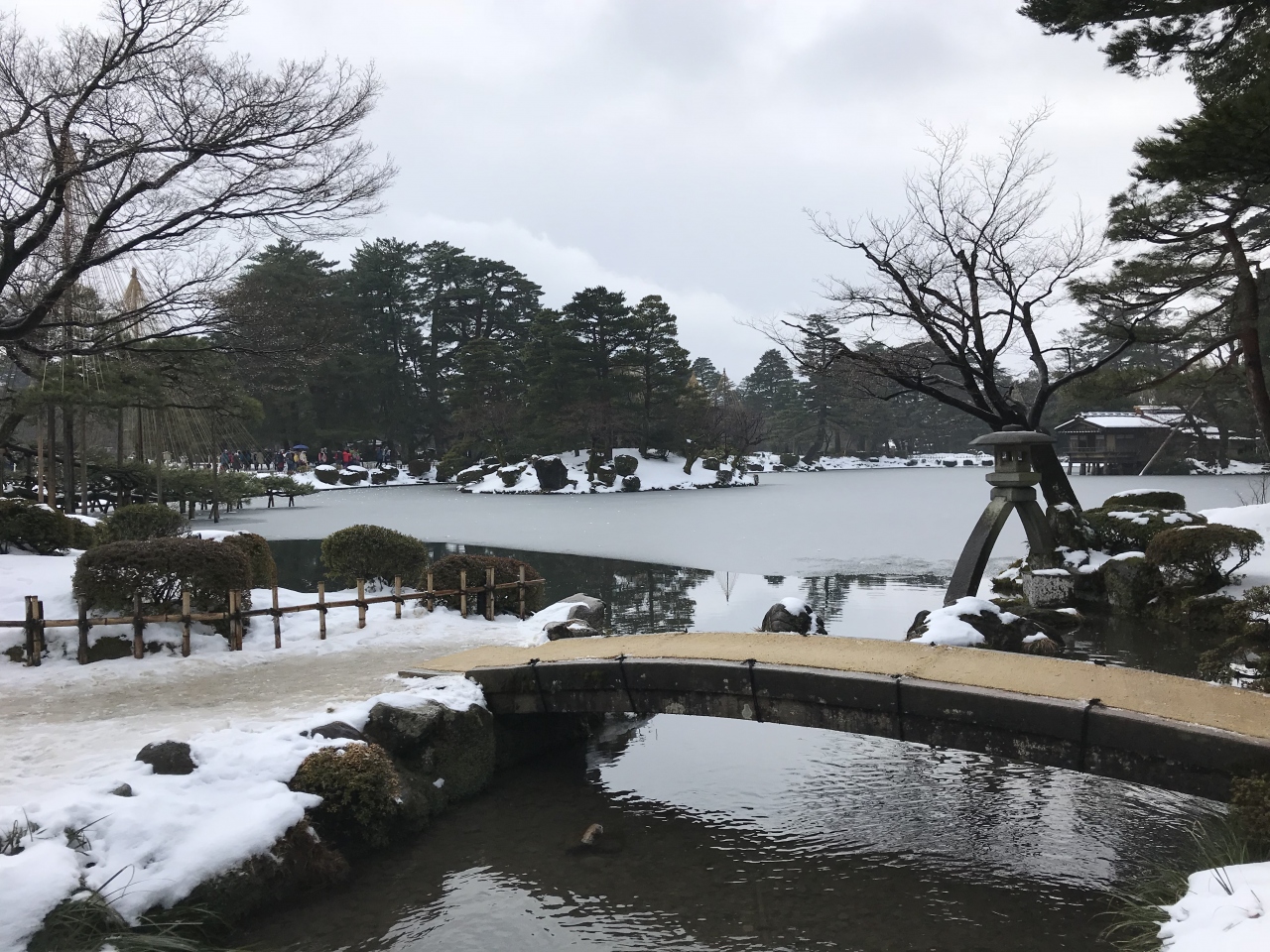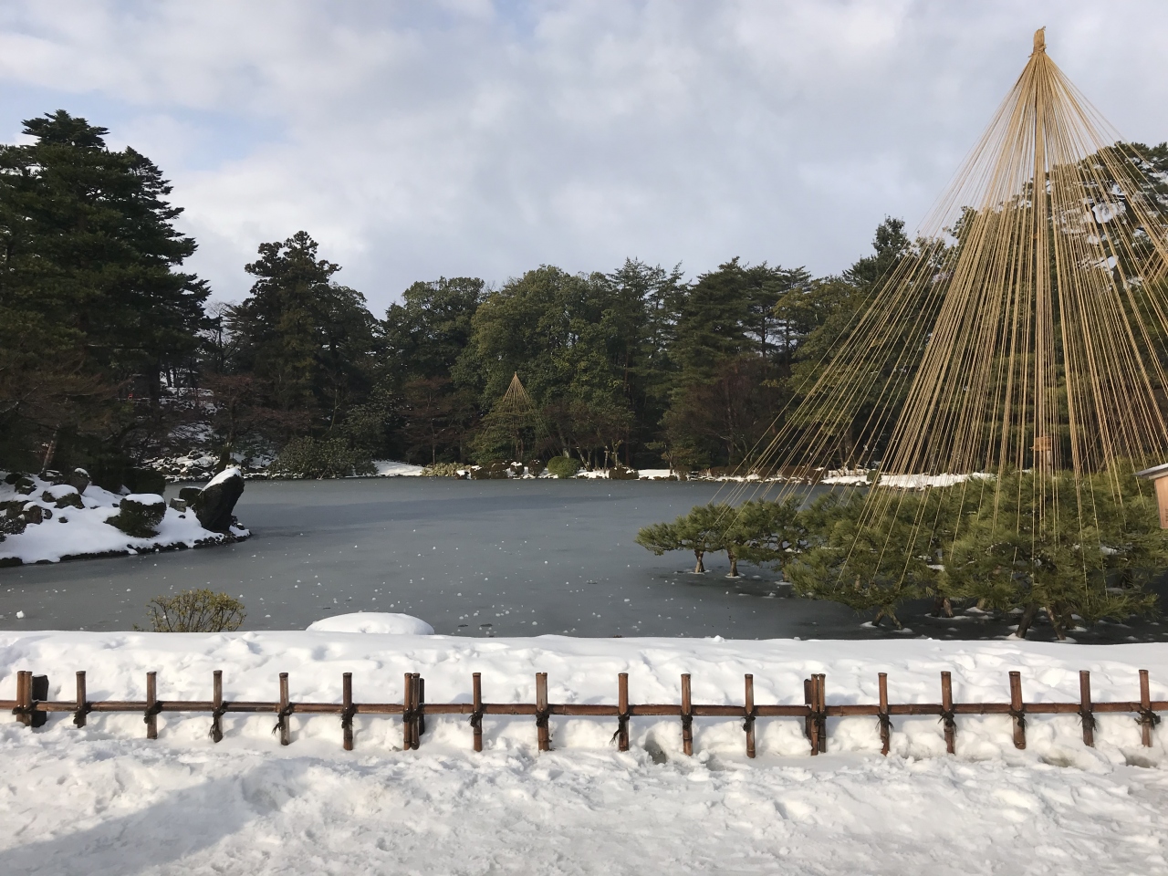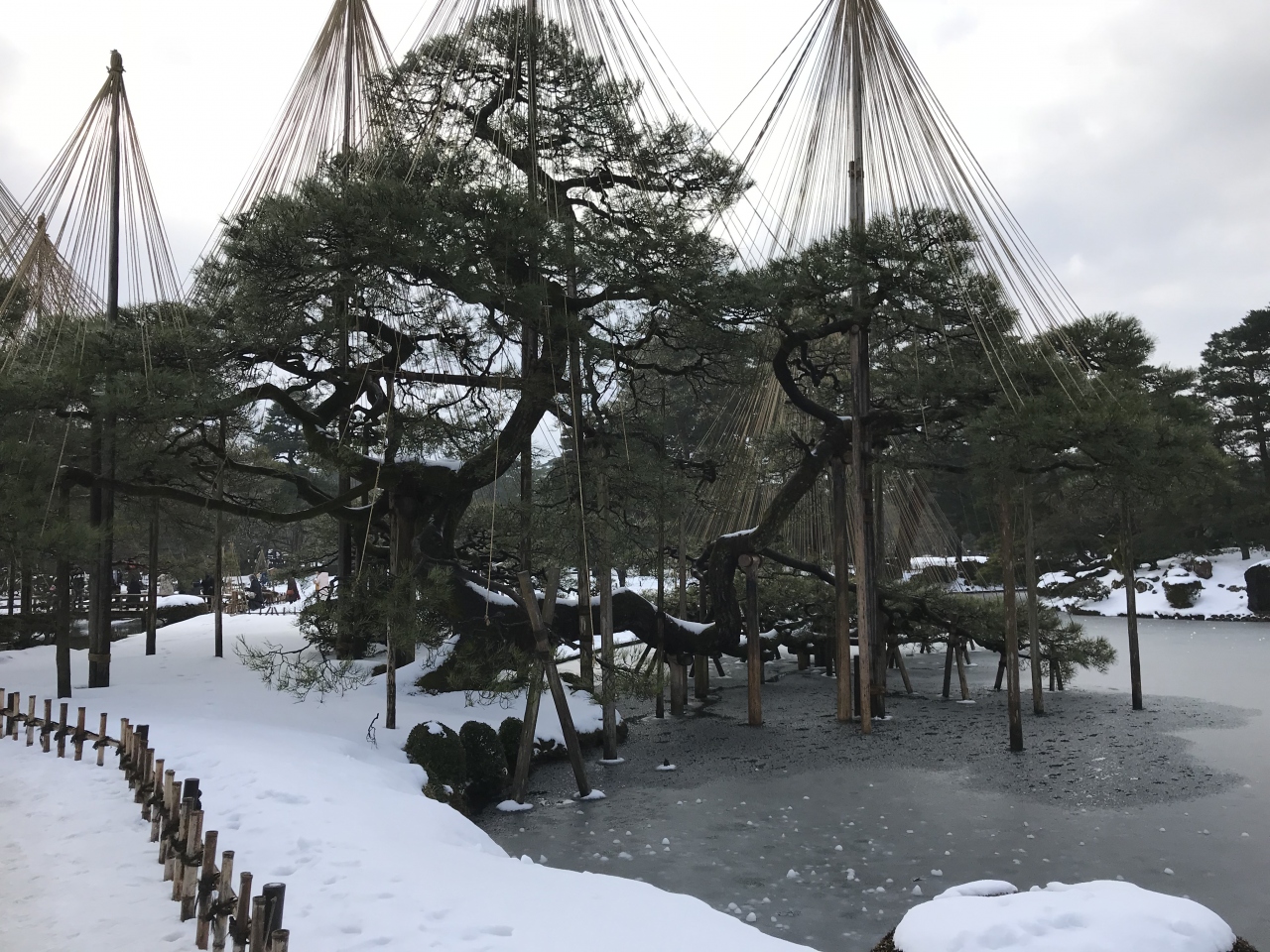 雪の季節だったので、雪吊りが見られ、情緒を感じさせてくれました。